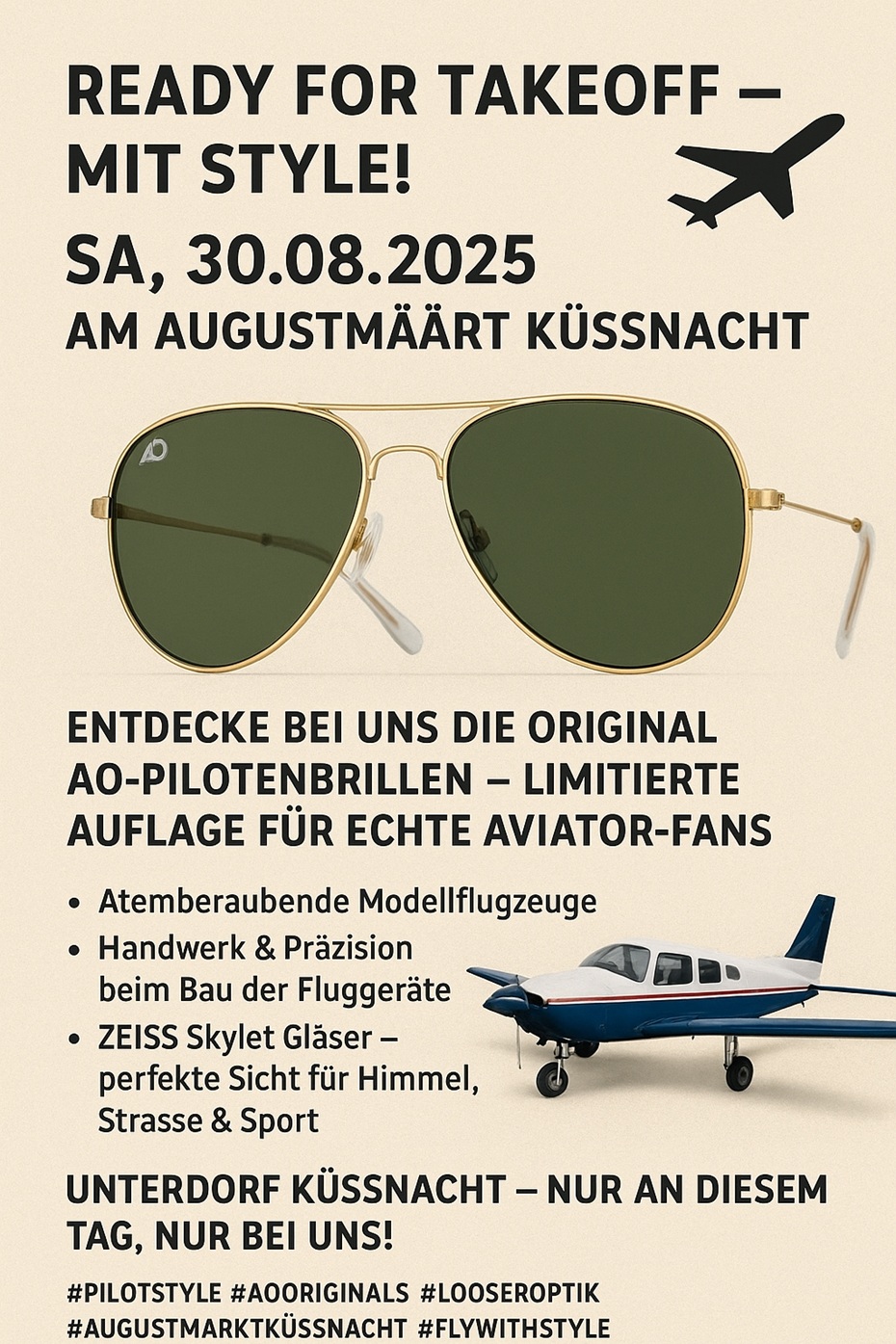 Die Looser Optik AG ist zusammen mit der Modellfluggruppe Rigi im Unterdorf mit einem gemeinsamen Marktstand vertreten.